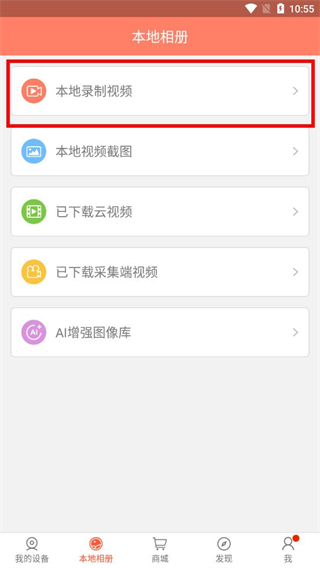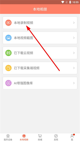 2、在本地相冊頁面,在列表找到本地錄制視頻選項。