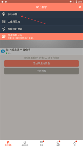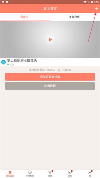 1、打開掌上看家APP,在首頁右上方點擊+的圖標。
