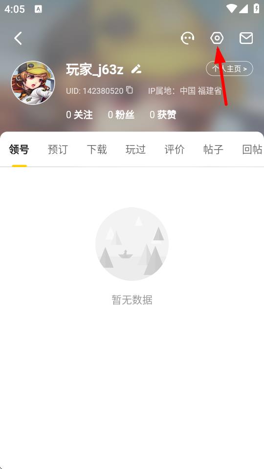 2、在個人頁面右上角,點(diǎn)擊六邊形設(shè)置圖標(biāo),進(jìn)入設(shè)置界面。