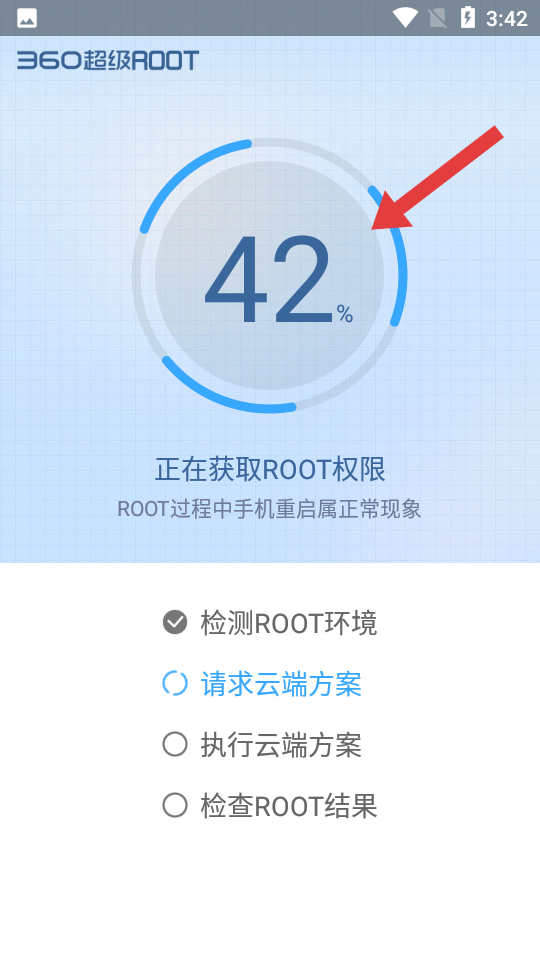 2、等待系統(tǒng)正在獲取ROOT權(quán)限,此過程中手機(jī)可能重啟,屬于正?,F(xiàn)象。