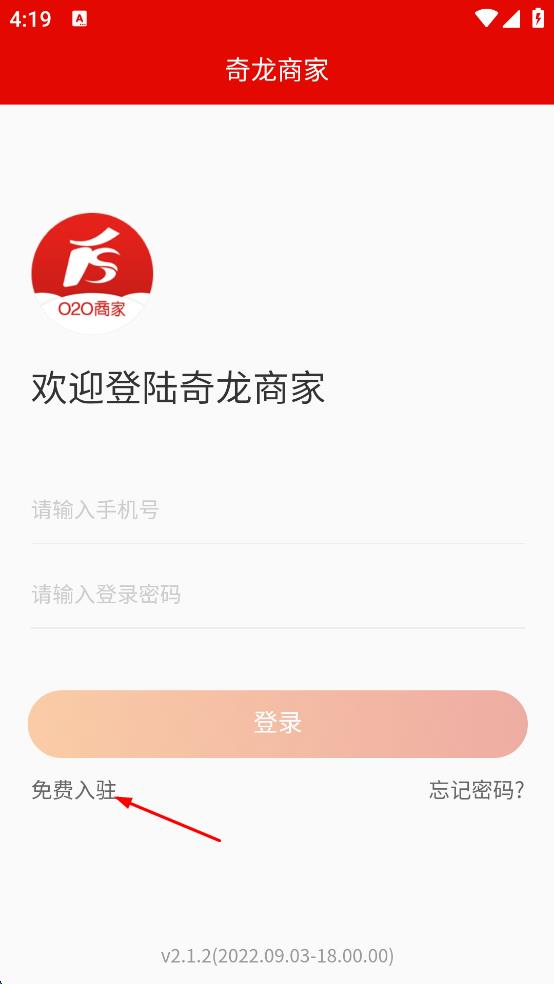 2、在登錄界面,點擊“免費入駐”選項,進入注冊頁面。