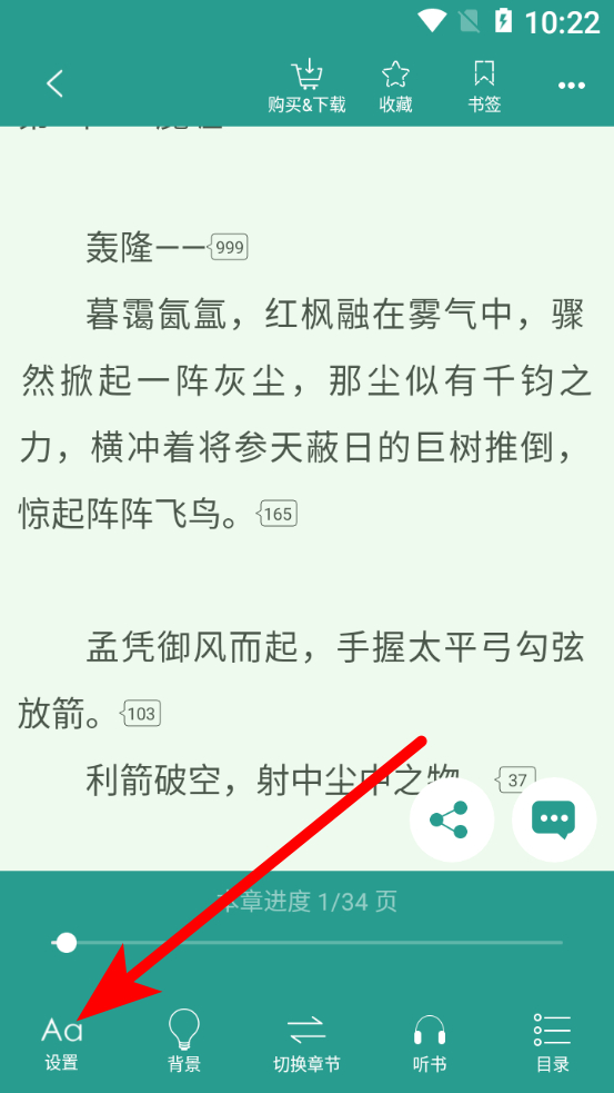 3、在小說閱讀界面,點擊左下角設(shè)置選項,展開設(shè)置菜單。