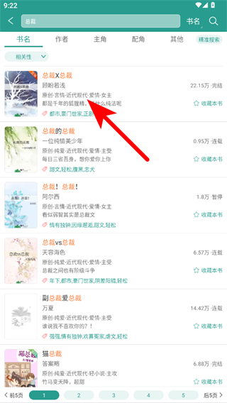 3、在搜索結(jié)果頁面,點擊目標(biāo)小說,進入小說詳情界面。