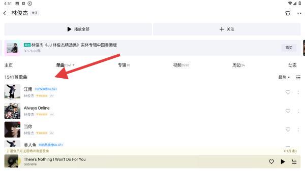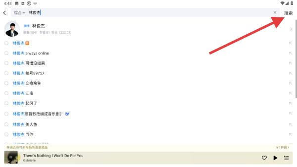 2、在搜索框輸入目標(biāo)歌手名字,如林俊杰,點(diǎn)擊鍵盤搜索或界面右側(cè)的搜索按鈕。