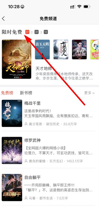 2、進(jìn)入免費(fèi)頻道頁(yè)面后,能看到限時(shí)免費(fèi)的小說(shuō)推薦,這里會(huì)展示正在限時(shí)免費(fèi)閱讀的小說(shuō)。