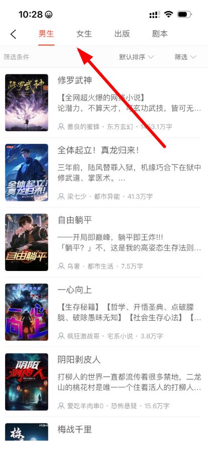 3、還設(shè)有免費(fèi)榜和新書榜,點(diǎn)擊上方的男生女生出版等分類標(biāo)簽,可以篩選查看不同類型的免費(fèi)小說(shuō),找到感興趣的小說(shuō)點(diǎn)擊即可開始閱讀。