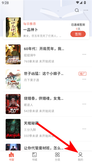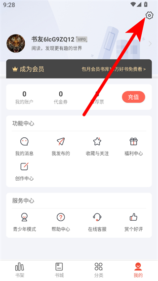 1、在17k小說(shuō)書架頁(yè)面,點(diǎn)擊右下角我的選項(xiàng),進(jìn)入個(gè)人中心界面。