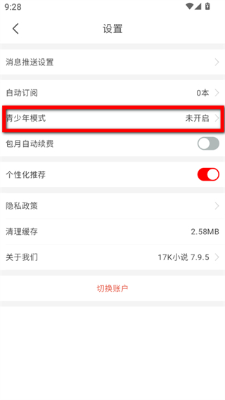 3、在設(shè)置頁(yè)面,點(diǎn)擊青少年模式選項(xiàng),進(jìn)入青少年模式界面。