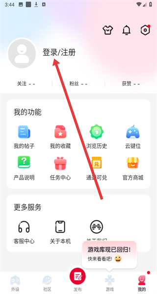 2、個(gè)人中心頁面點(diǎn)擊“登錄/注冊(cè)”,進(jìn)入登錄界面。