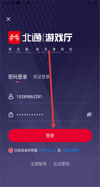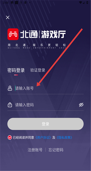 3、可以在登錄界面填寫賬號(hào)和登錄密碼信息。
