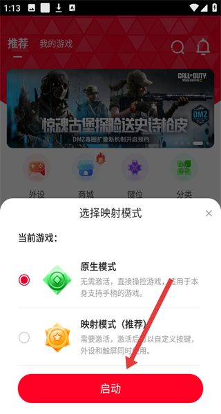 4、點(diǎn)擊“明日方舟”游戲圖標(biāo),選擇映射模式后點(diǎn)擊“啟動(dòng)”,開始運(yùn)行游戲。