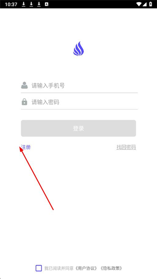 1、打開(kāi)觀心APP,在登錄頁(yè)面點(diǎn)擊注冊(cè)。