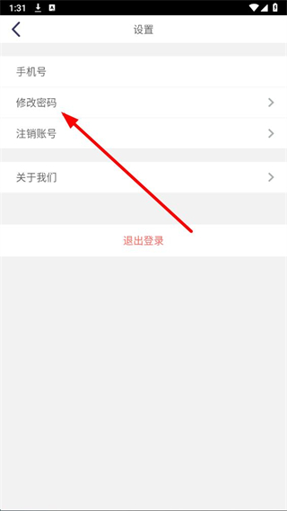 3、在設(shè)置頁(yè)面,點(diǎn)擊修改密碼選項(xiàng),進(jìn)入修改密碼頁(yè)面。