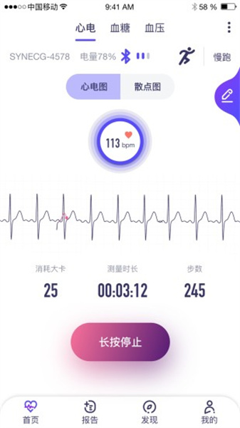 觀心app是款通過(guò)手機(jī)藍(lán)牙與健康監(jiān)測(cè)設(shè)備連接使用的健康數(shù)據(jù)統(tǒng)計(jì)軟件,通過(guò)它可以同步查看監(jiān)測(cè)數(shù)據(jù)信息,獲取心電、血糖、血壓監(jiān)測(cè)數(shù)據(jù)結(jié)果,提供通俗易懂的分析結(jié)果報(bào)告;可以用它來(lái)監(jiān)測(cè)自己或者家人的心率變化,一鍵即測(cè)。