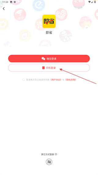 2、進(jìn)入登錄的頁面內(nèi),點擊手機(jī)登錄的按鈕。