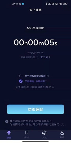 知了睡眠軟件幫助監(jiān)控睡眠狀態(tài)的一個(gè)工具,在睡覺(jué)時(shí)把a(bǔ)pp打開,通過(guò)錄入聲音來(lái)分析當(dāng)前的睡眠狀態(tài),通過(guò)詳細(xì)的數(shù)據(jù)分析來(lái)了解自己的睡眠質(zhì)量,看看自己的呼吸頻率等是否正常,還有其他好用的貼心功能可供體驗(yàn)。
