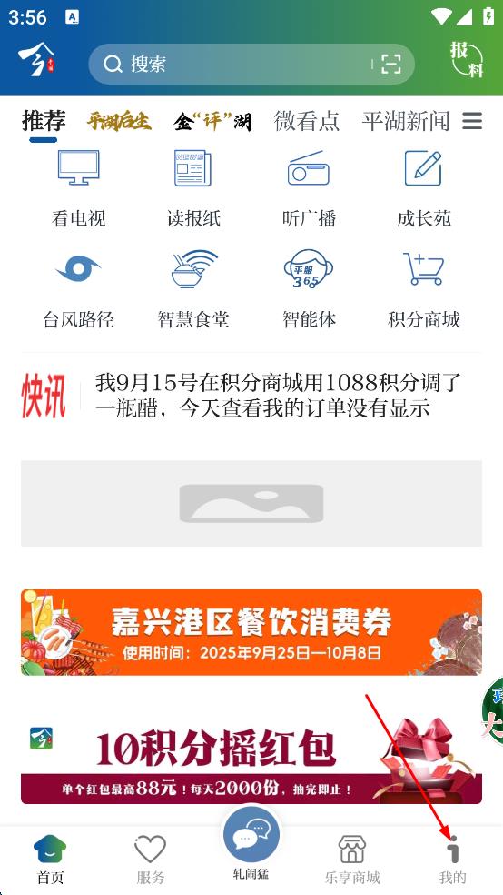 2、進(jìn)入今平湖主界面后,點(diǎn)擊右下角我的。