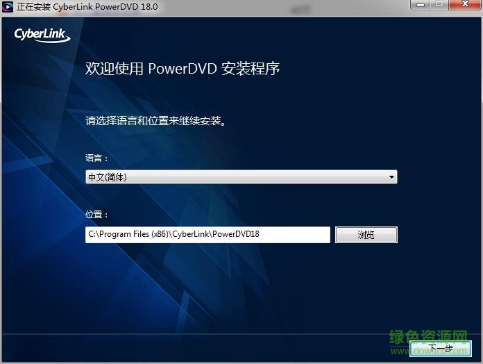 2.默認(rèn)語(yǔ)言為:簡(jiǎn)體中文,路徑為:C:\Program Files (x86)\CyberLink\PowerDVD18(路徑最好不要修改)