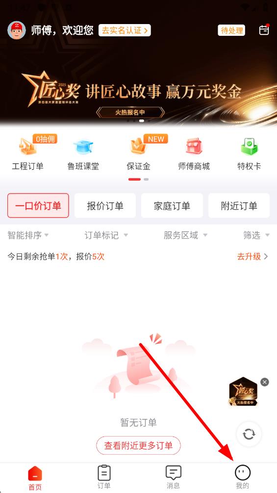 1、打開魯班到家app,點擊底部導航欄中的我的圖標進入個人界面。