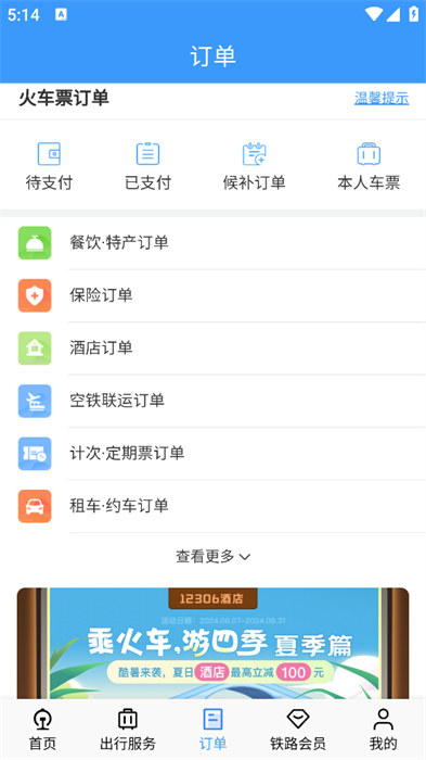 鐵路12306訂票app是鐵路12306官網(wǎng)推出的官方訂票軟件,是國人出行的實(shí)用工具,支持預(yù)訂火車票、高鐵票,無需到車站排隊(duì)購票,操作便捷,手機(jī)一鍵即可完成購票,還能通過二維碼掃碼乘車或取票,為出行提供便利,滿足日常購票需求,是便捷的鐵路票務(wù)服務(wù)工具。