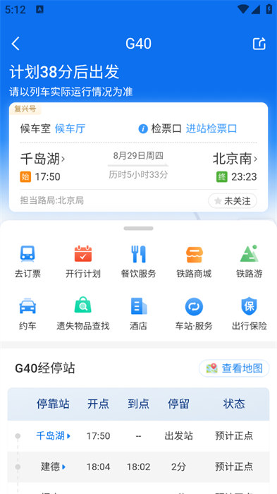 2、輸入自己乘坐的列車就能查看到實(shí)時的時刻表和經(jīng)停站;