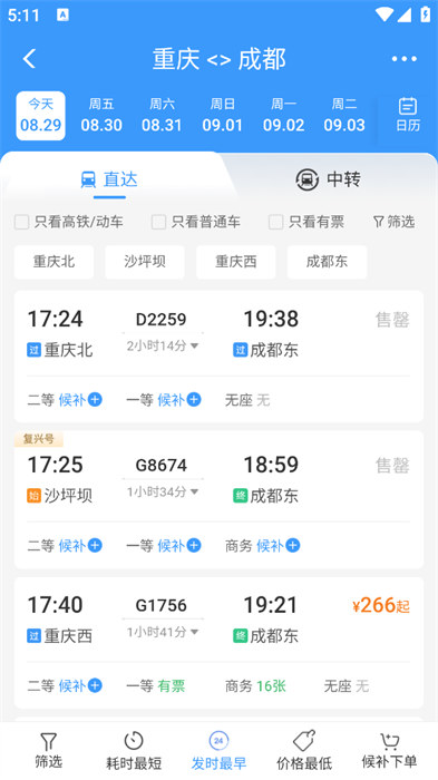1、可以輸入自己的出發(fā)地和目的地搜索車票;