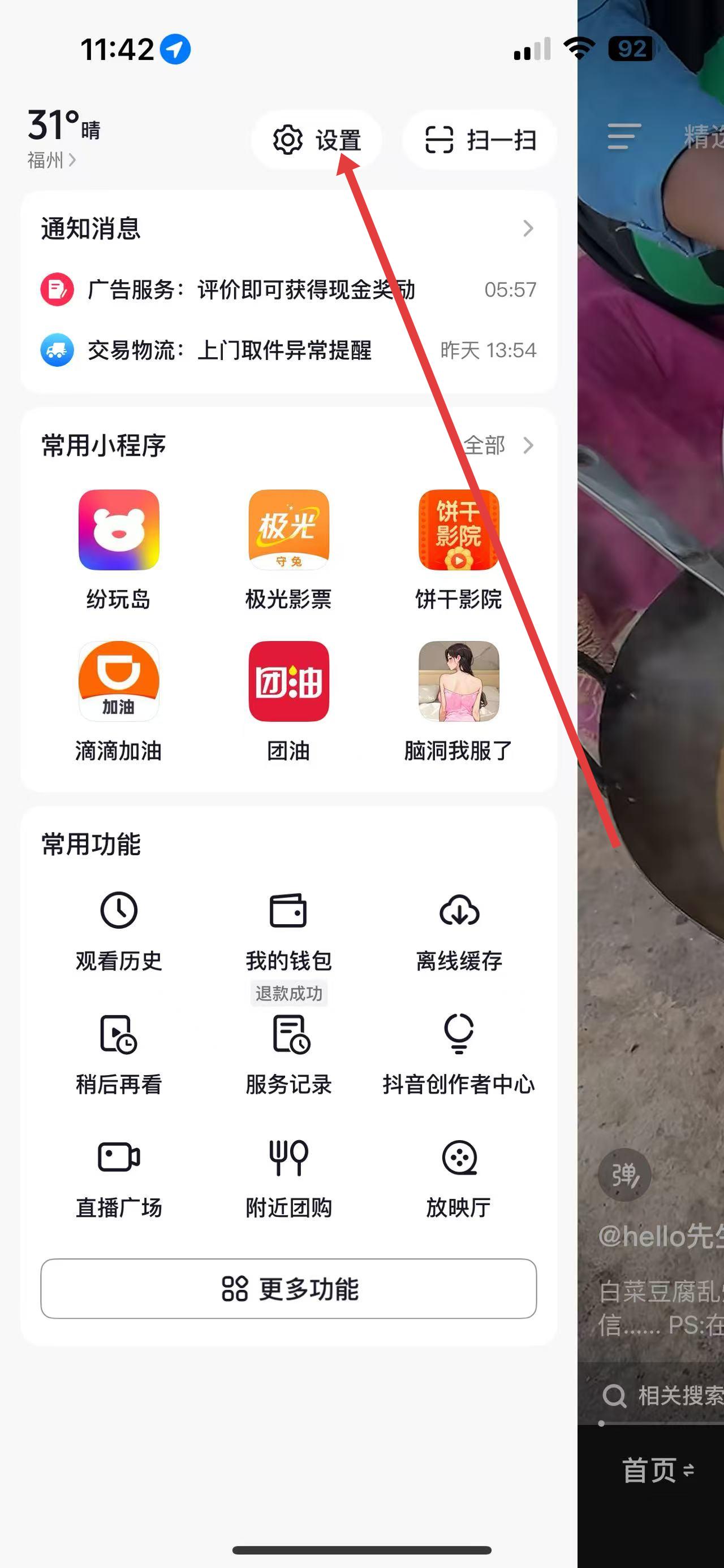 1、打開抖音APP,點(diǎn)擊界面右上角設(shè)置按鈕,進(jìn)入設(shè)置頁面。