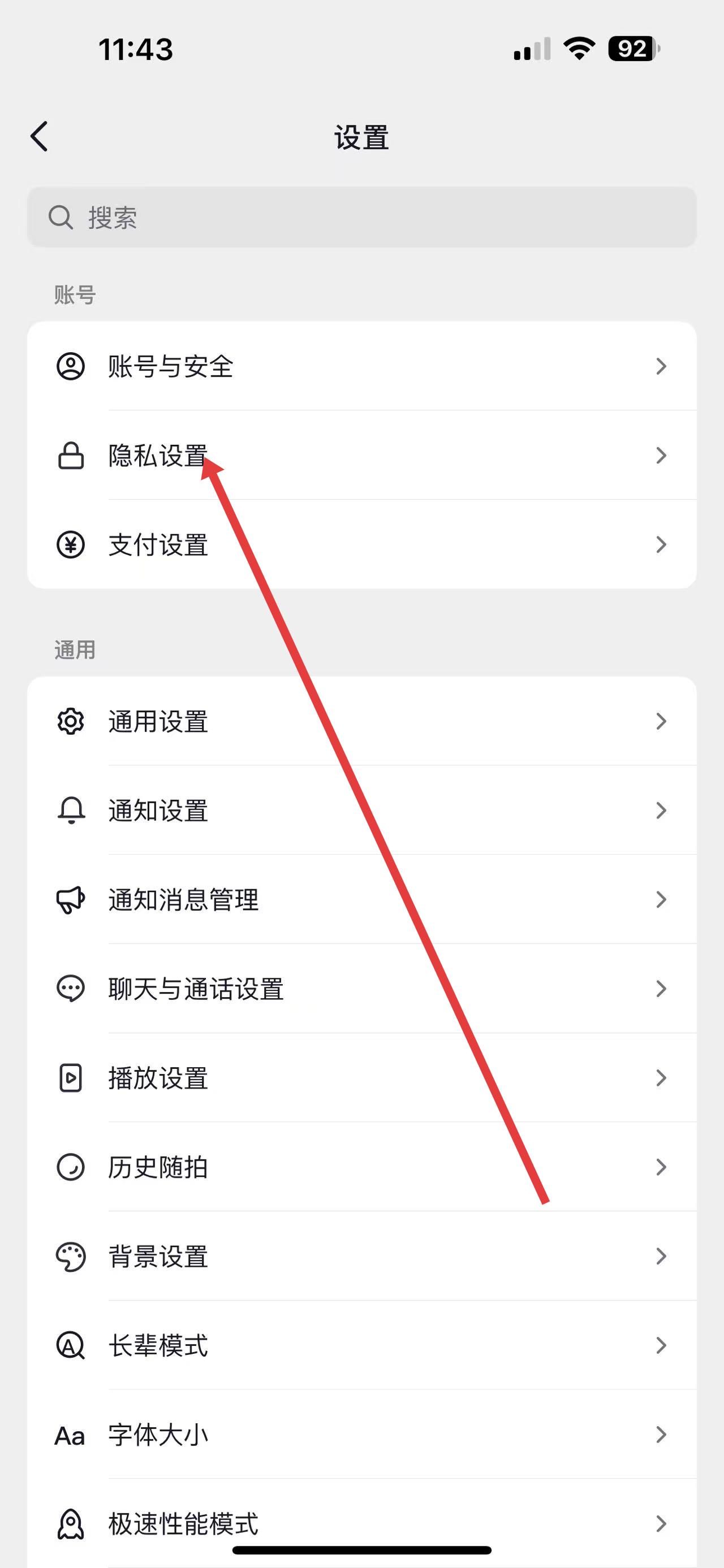 2、在設(shè)置頁,點(diǎn)擊隱私設(shè)置選項(xiàng),跳轉(zhuǎn)至隱私設(shè)置界面。