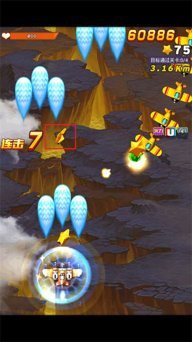 2、滑動屏幕以進(jìn)行飛機的左右移動,這會更加便于對面飛機的射擊;