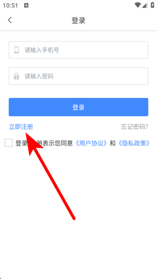 1、打開汽配無憂APP,在登錄頁面點擊立即注冊。
