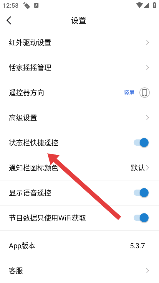2、在設(shè)置頁面中找到并點擊狀態(tài)欄快捷遙控的選項后,能夠進入快速啟動設(shè)置的界面。