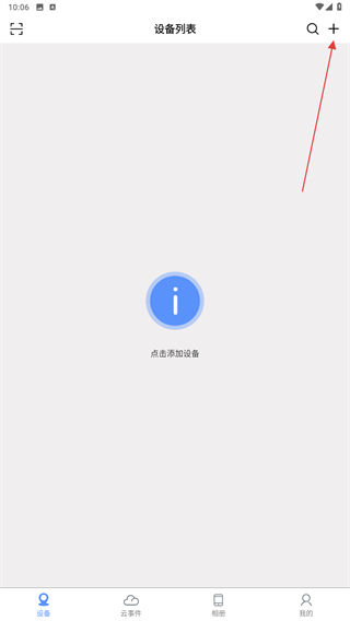 1、啟動(dòng)巨峰眼APP,進(jìn)入首頁(yè)點(diǎn)擊右上角+的功能按鈕。