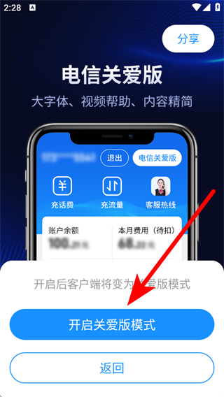 3、在彈出的頁面中,點擊開啟關愛版模式,完成關愛模式的切換。