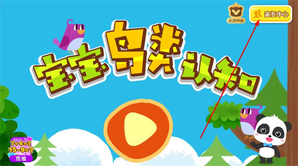 1、打開寶寶鳥類認(rèn)知app,點(diǎn)擊右上角家長(zhǎng)中心。