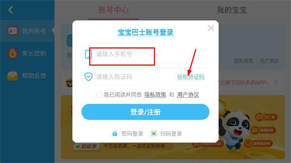 3、選擇驗(yàn)證碼登錄方式,輸入手機(jī)號(hào),點(diǎn)擊獲取驗(yàn)證碼。