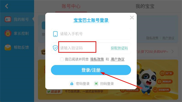 4、輸入收到的驗(yàn)證碼,點(diǎn)擊登錄/注冊(cè),即可完成登錄。