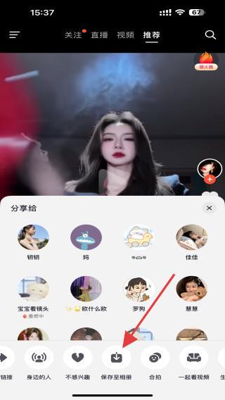 2、在彈出的分享界面底部,向右滑動點擊保存至相冊的功能按鈕。