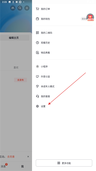 3、在右側(cè)彈出的菜單欄中,找到并點擊設(shè)置的功能按鈕。