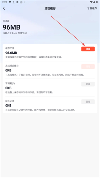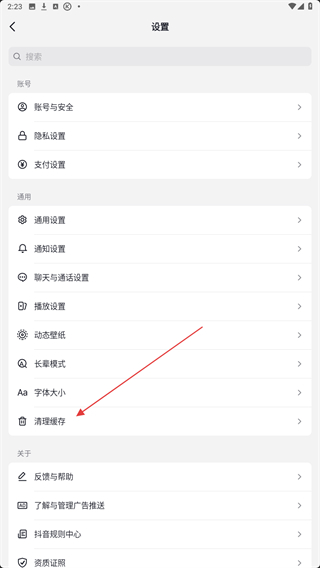 4、進入設(shè)置的界面內(nèi),向下滑動找到并點擊清除緩存的按鈕。