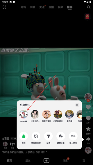 2、當(dāng)頁面彈出分享的菜單欄,選擇并點擊要分享的好友。