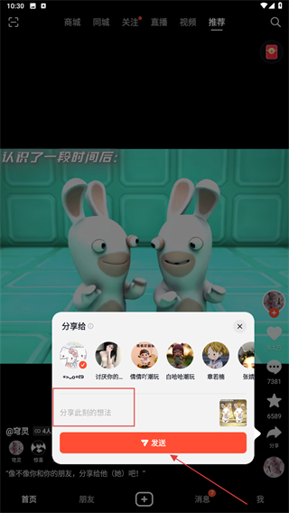3、在輸入欄內(nèi)輸入分享內(nèi)容后,點擊發(fā)送即可分享成功。