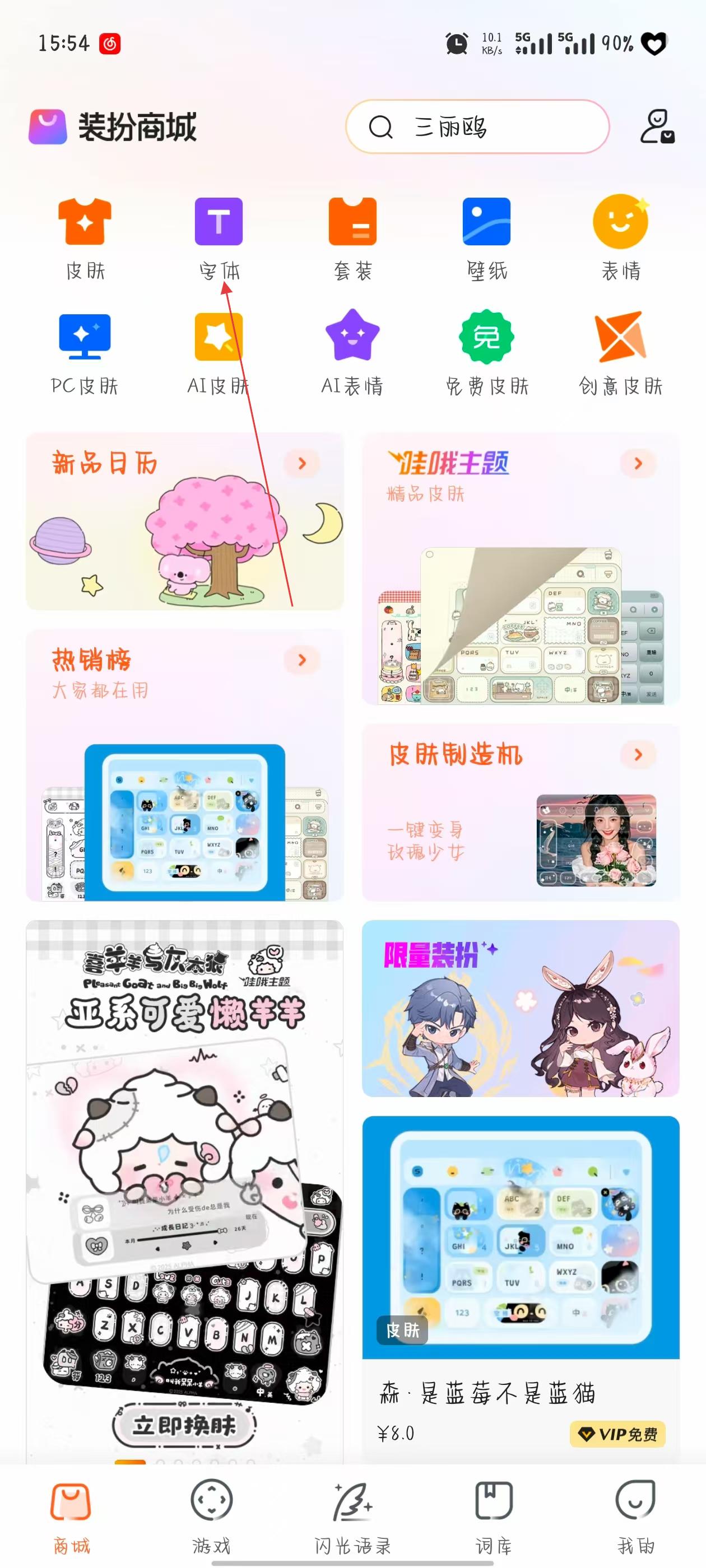 1、打開搜狗輸入法小米版的裝扮商城,在功能選項里找到字體并點擊,進入字體選擇頁面。