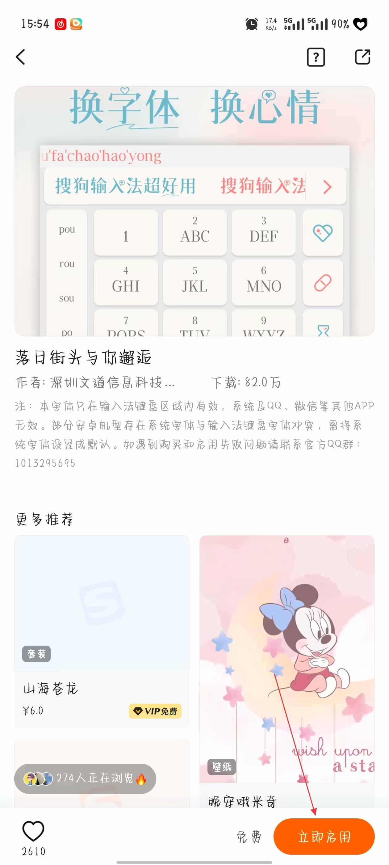 4、在字體詳情頁面,點擊右下角的立即啟用按鈕,啟用該免費字體。