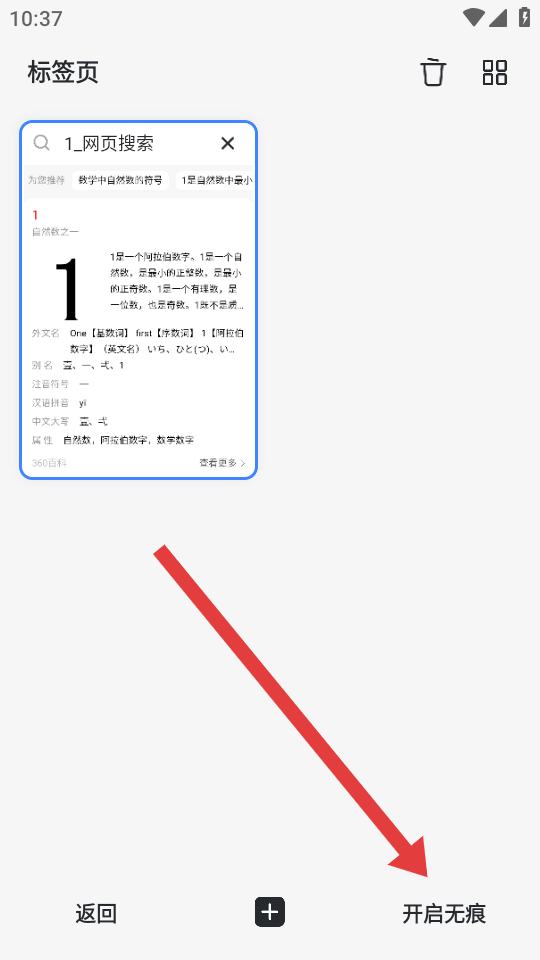 2、在標簽頁的管理頁面,我們這邊需要選擇點擊右下角開啟無痕的按鈕,進入無痕模式。