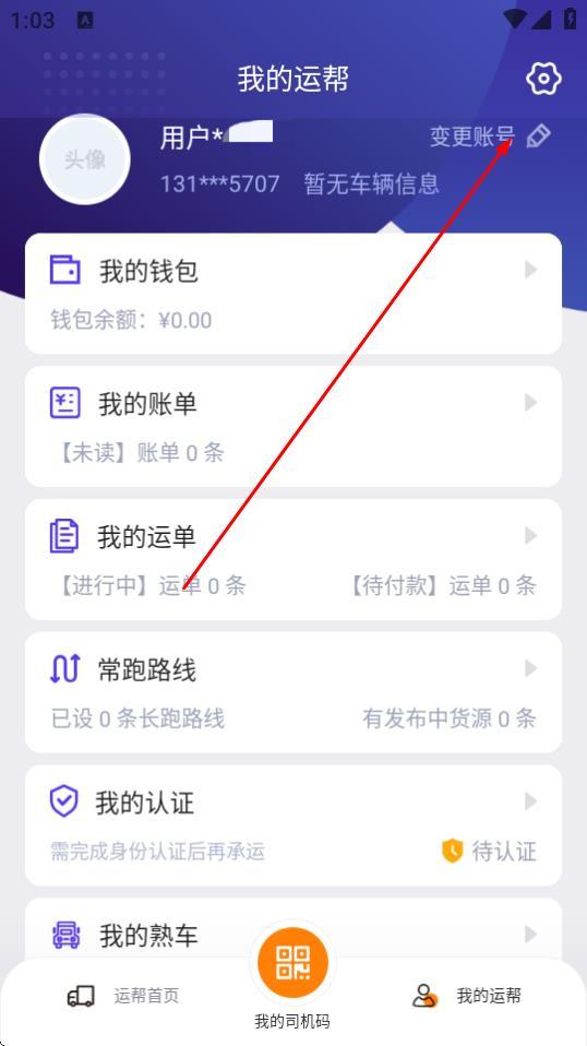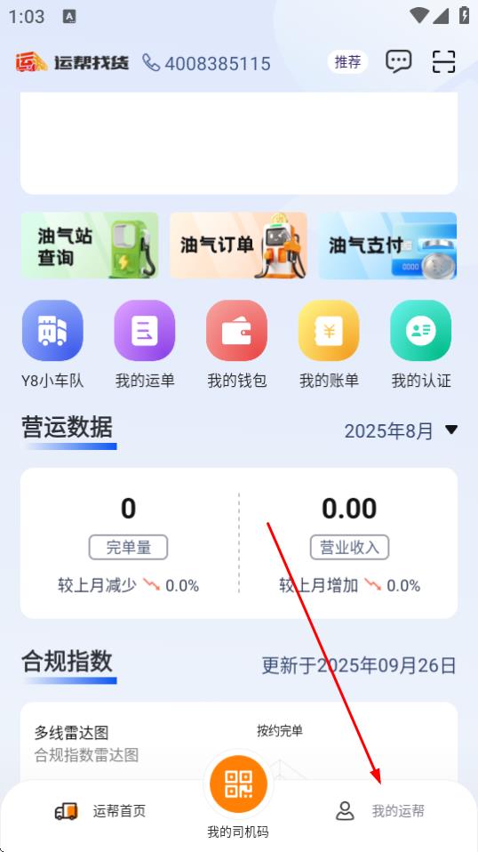 1、打開運幫找貨APP,點擊底部導(dǎo)航欄中的我的運幫。
