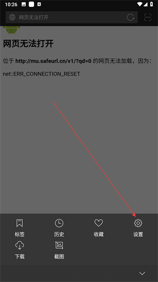 2、在展開的功能菜單中,點擊設(shè)置選項,進入瀏覽器的設(shè)置界面。