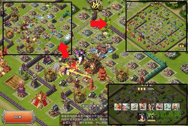 接下來(lái),用弓箭清掃另外一角,用曹操等盾類武將抗在之前,如果血量不夠的可以加戰(zhàn)象以及重騎,一定要讓你的先頭部隊(duì) “厚”起來(lái)。