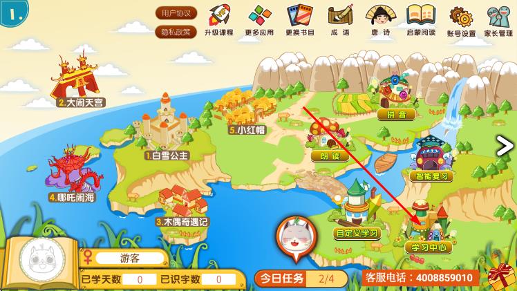1、打開蔥喵兒識字,找到并點擊學(xué)習(xí)中心。