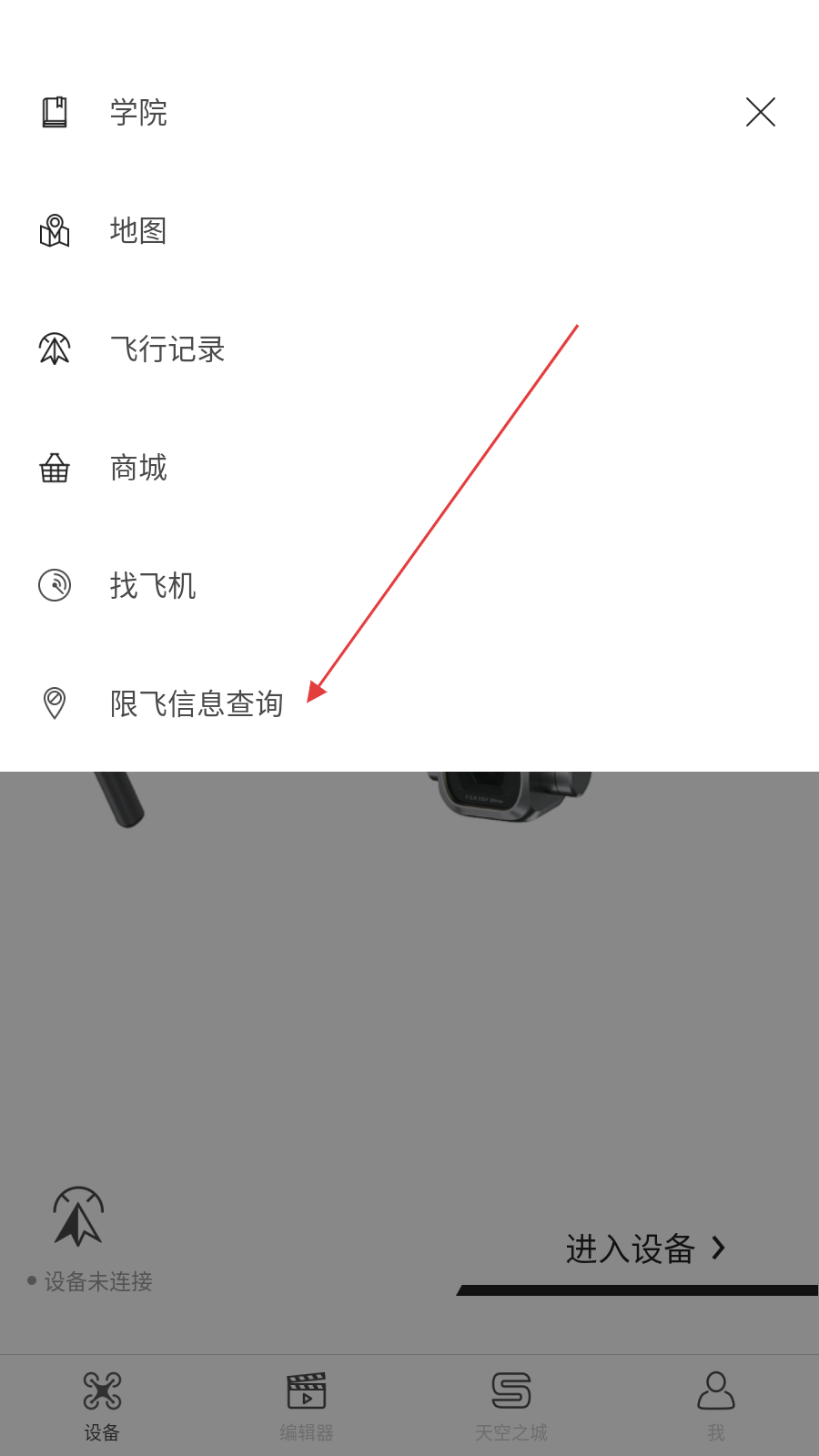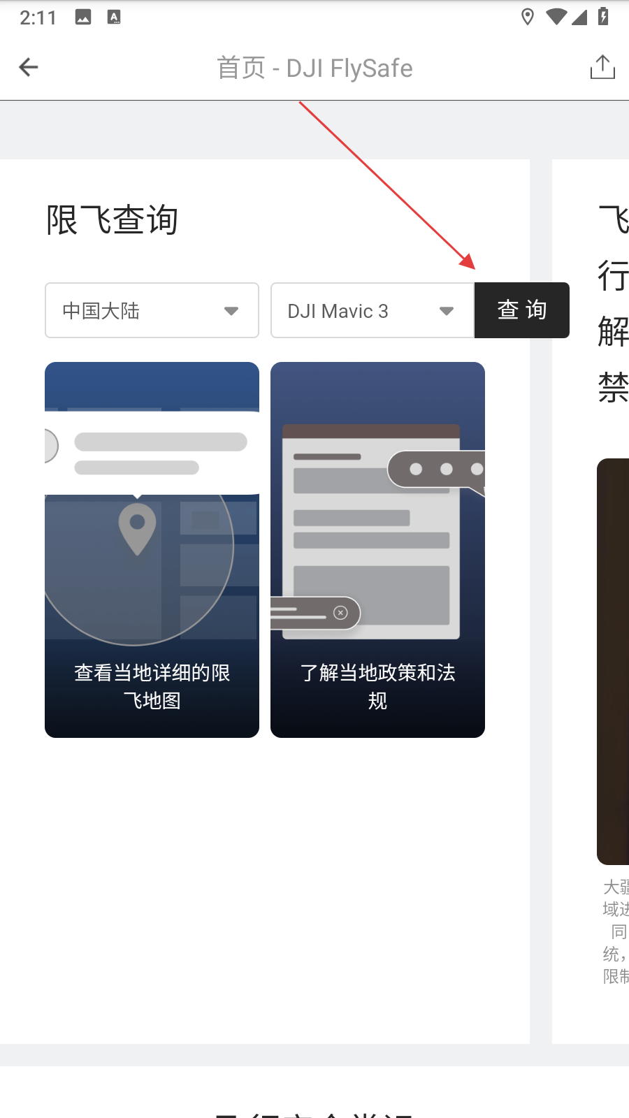 2、在功能菜單中的最下方選項,找到限飛信息查詢選項并點擊進入限飛查詢界面。