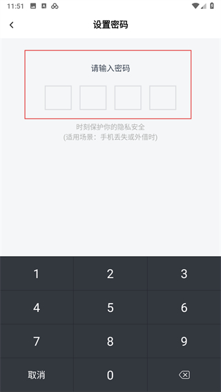 4、在設(shè)置密碼界面,輸入想要設(shè)置的四位數(shù)密碼,完成輸入后即可成功設(shè)置。
